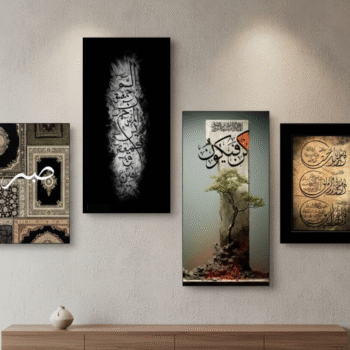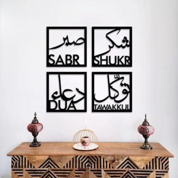 Set Of 4 Pcs Islamic Calligraphy Art Wooden Phototiles Elegant Durable Stylish Decorative