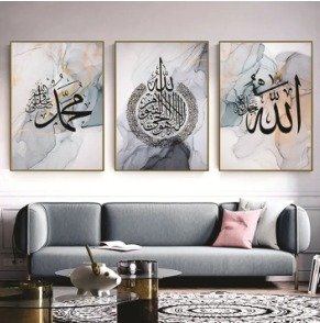 Set of 3 Islamic Wall Art Wooden Phototile Frames for Wall Decor