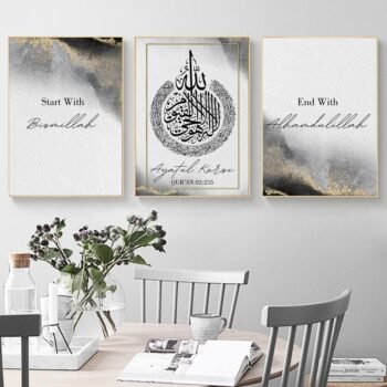 Set of 3 Islamic Calligraphy Wall Art Frames Wooden Wall Decors