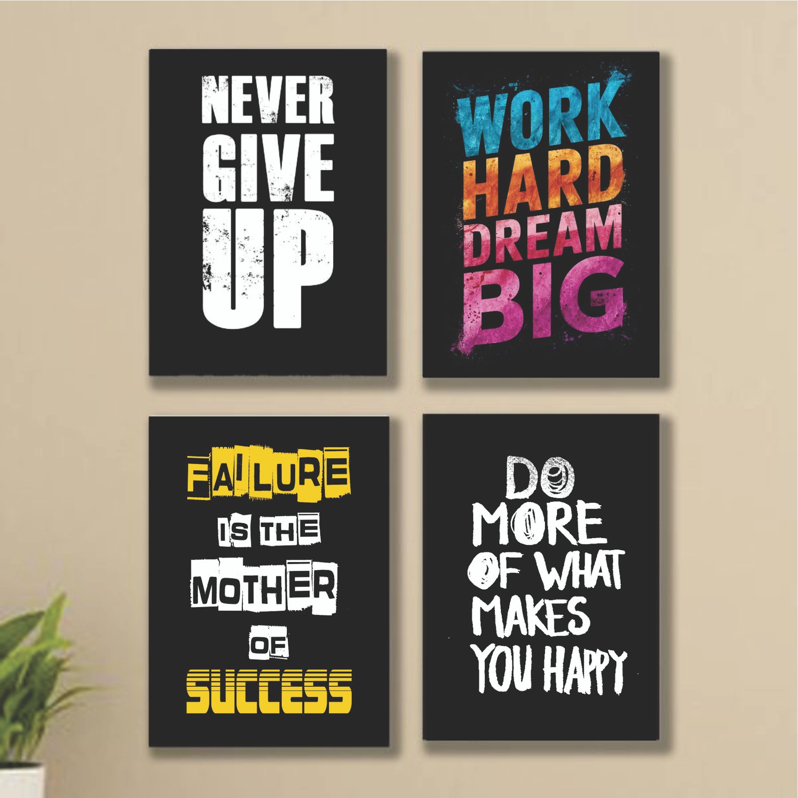 Elevate your space with this refined Set of 4 Motivational Wall Frames, designed to inspire positivity while adding a calm and uplifting presence to your interiors.